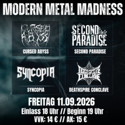 Veranstaltungen ELBKRAUT2! Pelagic Zone & mars mushrooms/ Tag 2 ELBKRAUT2! Pelagic Zone & mars mushrooms Modern Metal Madness presents: Cursed Abyss, Second Paradise, Syncopia, Deathspire Conclave Lebron Johnson Night of the Broken Spine/ Repelled, Dead End Circle, Santa Jaws Stevie and the Hand Jive Madeline Goldstein Jason Kane & The Jive Fresse auf! feat.: Phase-out Model, TURBOLENT, Kein Wunder Howling Giant & Stargo RETURN OF THE SHOGUNATE – EUROPEAN TOUR 2026/ Whispered, Torchia, Scar Of The Sun, Ceremony SOLACE & JUKE COVE Fußballkino Hamburg/ St.Pauli vs.Wolfsburg Young 501 ELJO (Copenhagen) Ryan Cassata/ Support: LEOPOLD Charlie Risso SELVE live im Stellwerk UNFUG IM STELLWERK Deshurance /All Is Temporary Tour 2026/ Support: Elvira